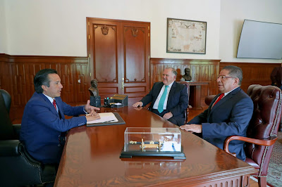 Xalapa, Ver.- El gobernador Cuitláhuac García Jiménez se reunió con los titulares de los poderes Legislativo y Judicial, José Manuel Pozos Castro y Edel Álvarez Peña, respectivamente.
